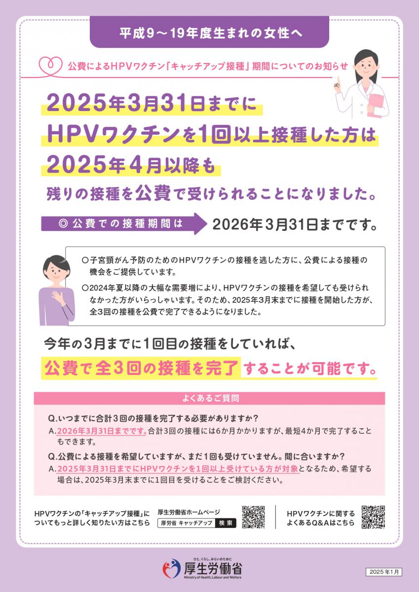 厚生労働省 ヒトパピローマウイルス(HPV)ワクチンの接種を逃した方へ~キャッチアップ接種のご案内~